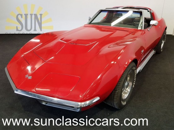 Chevrolet Corvette C3 Stingray aus 1969. Dieser C3 war ursprunglich geliefert worden mit den populären runden Rücklichten und chrom Stossstangen vorne und hinten. Das Auto fährt, bremst und schaltet und ist in nettem Zustand. Auch hat er die originale Side-Pipes mit neuen chromierten covers, 350 CUI V8 Motor und Schaltgetriebe. Der Corvette hat US Kennzeichen und Importdokumente.