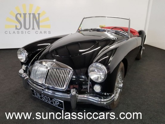 MGA aus 1959 in nettem Zustand. Der MGA hat schwarze Farbe mit neuer schwarzen Lederausstattung und neues roten Kabriodach. Der MGA hat den umgebauten MGB 4 Zyl 1800 CC Motor. Das Auto fährt, bremst und schaltet gut. Vo reinigen Jahren ist das Auto neu lackiert worden. In der Vergangenheit hat er Schaden gehabt. Der MGA hat Französisch Registrierung.