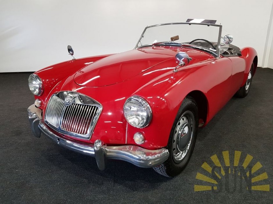 Dieser MGA 1500 Kabriolett ist aus 1959. Er hat Lackierung in der Farbe Orient Red mit schwarzer Innenausstattung. Der MG war in Amerika und hat einige Jahren nich gefahren. Das Auto fahrt, bremst und schaltet. Die Karosserie ist sehr gut und die Blechteile haben eine gute Passform. Der MGA hat amerikanisches Kennzeichen, Importsteuer ist bezahlt worden.