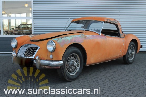 1957 MGA roadster. A good base for restoration. Car has a 1498 cc, 60hp engine and manual gearbox. This MGA has wire wheels and a hardtop. A beautiful project for hobbyists.