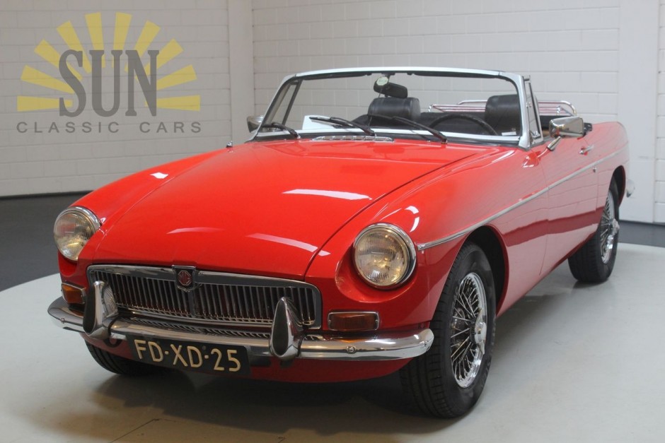 Dieser MG B Kabriolett wurde im Jahr 1968 neu geliefert und ist in gutem Zustand. Der MG ist in der Farbe Flame Red kombiniert mit einer schwarzen Lederausstattung mit roten Paspeln, Speichenrädern und einer Chrom-Gepäckablage. Darüber hinaus ist das Fahrzeug mit dem 1798 CC großen 4-Zylinder-Motor in Kombination mit dem manuellen 4-Gang-Getriebe ausgestattet. Kurz gesagt, ein MG B-Kabriolett in gutem Zustand für viel Fahrspaß.