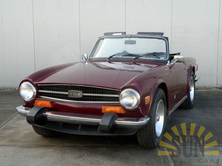Triumph TR6 aus dem Baujahr 1974 in Karminrot.