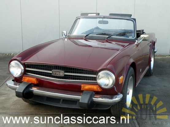 Dieser sehr straffe Triumph TR6 ging im Jahr 1974 vom Band. Der TR6 ist in der beliebten Farbe Karminrot lackiert. Sein 2498 ccm-Sechszylindermotor läuft sehr schön. Der Triumph lässt sich fahren, bremsen und schalten. Der Lack sieht immer noch gepflegt aus und weist Verschleißerscheinungen auf. Der TR6 wird mit einem US-amerikanischen Titel bereitgestellt, die Einfuhrabgaben wurden bezahlt.