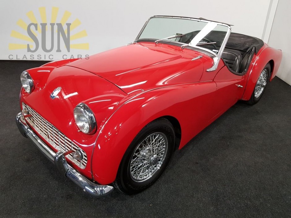 Dieser gut fahrende Triumph TR3 stammt aus dem Jahr 1959. Das Auto befindet sich in einem guten Zustand mit Gebrauchsspuren. Die rote Lackierung sieht gut aus genauso wie das Interieur. Der TR3 ist mit den beliebten Speichenfelgen ausgestattet. Das Auto hat ein niederländisches Kennzeichen.