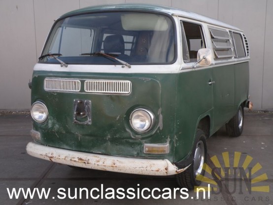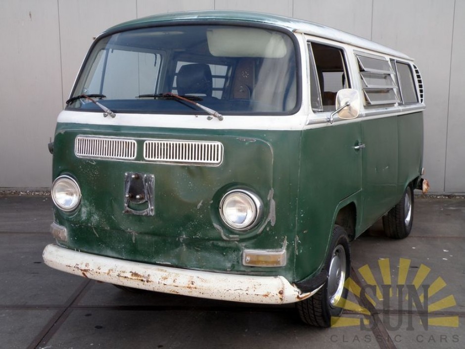 Dieser Volkswagen T2 Deluxe wurde im Jahr 1971 gebaut. Dies ist ein ausgesprochen solides, fahrendes Restaurierungsobjekt. Der VW-Bus läuft, bremst und schaltet. Bei diesem Bus handelt es sich um des “Deluxe“-Modell, das an den Klappfenstern und den Armlehnen an den Türen sowie den Kopfstützen und den schönen Beschlägen zu erkennen ist.